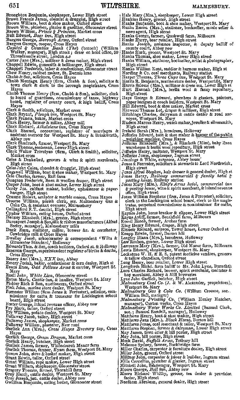 Page 96 Malmesbury; businesses from Broughton to Needham.