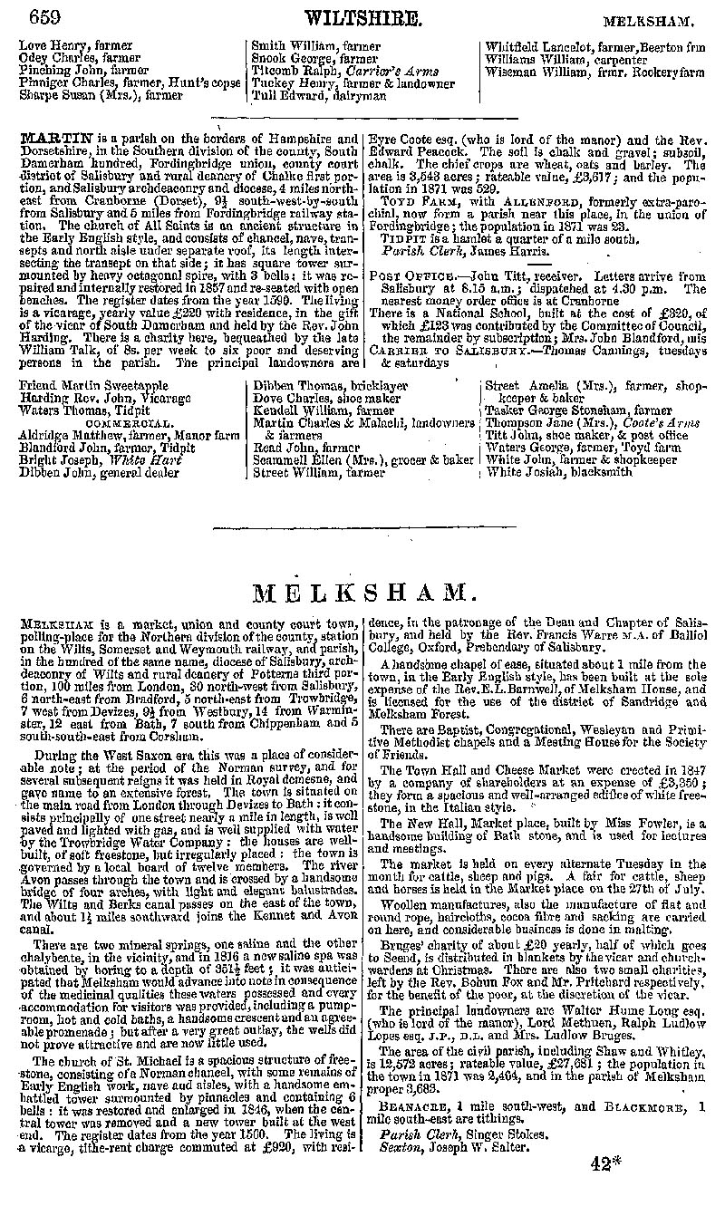 Page 104 Description and residents of South Marston and Martin (now in Hampshire). Melksham; description and history.