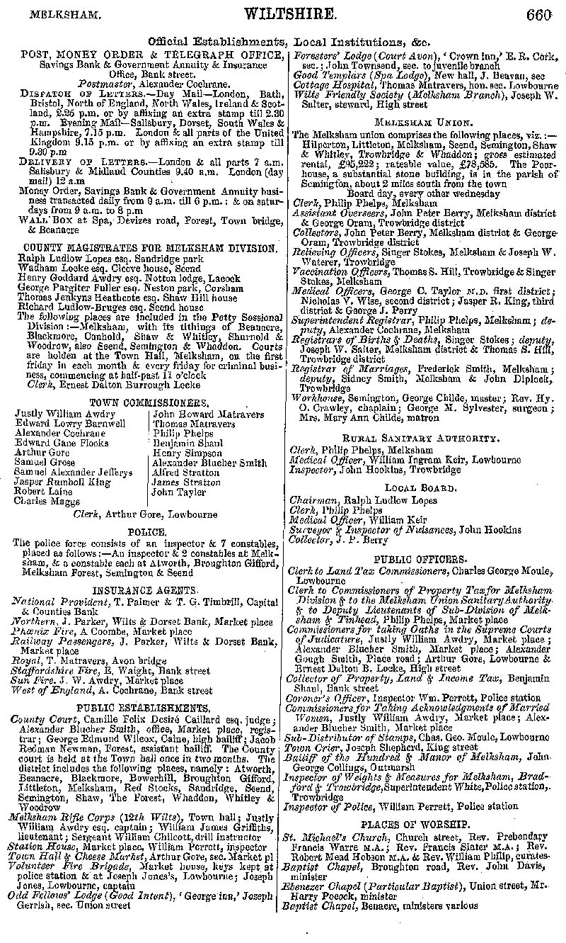 Page 105 Melksham; official establishments and local institutions, churches.