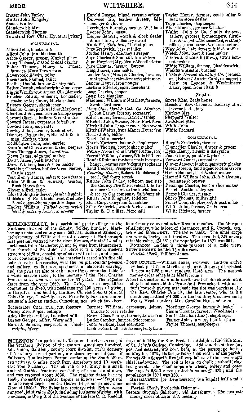 Page 109 Description and residents of Mere with Zeals, Mildenhall and Milston.