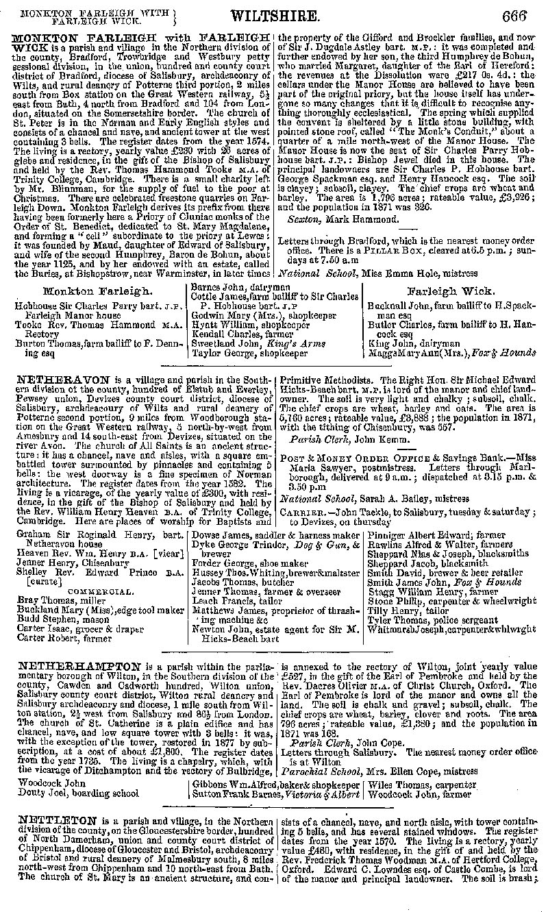 Page 111 Description and residents of Monkton Farleigh (including Farleigh Wick), Netheravon, Netherhampton and Nettleton.