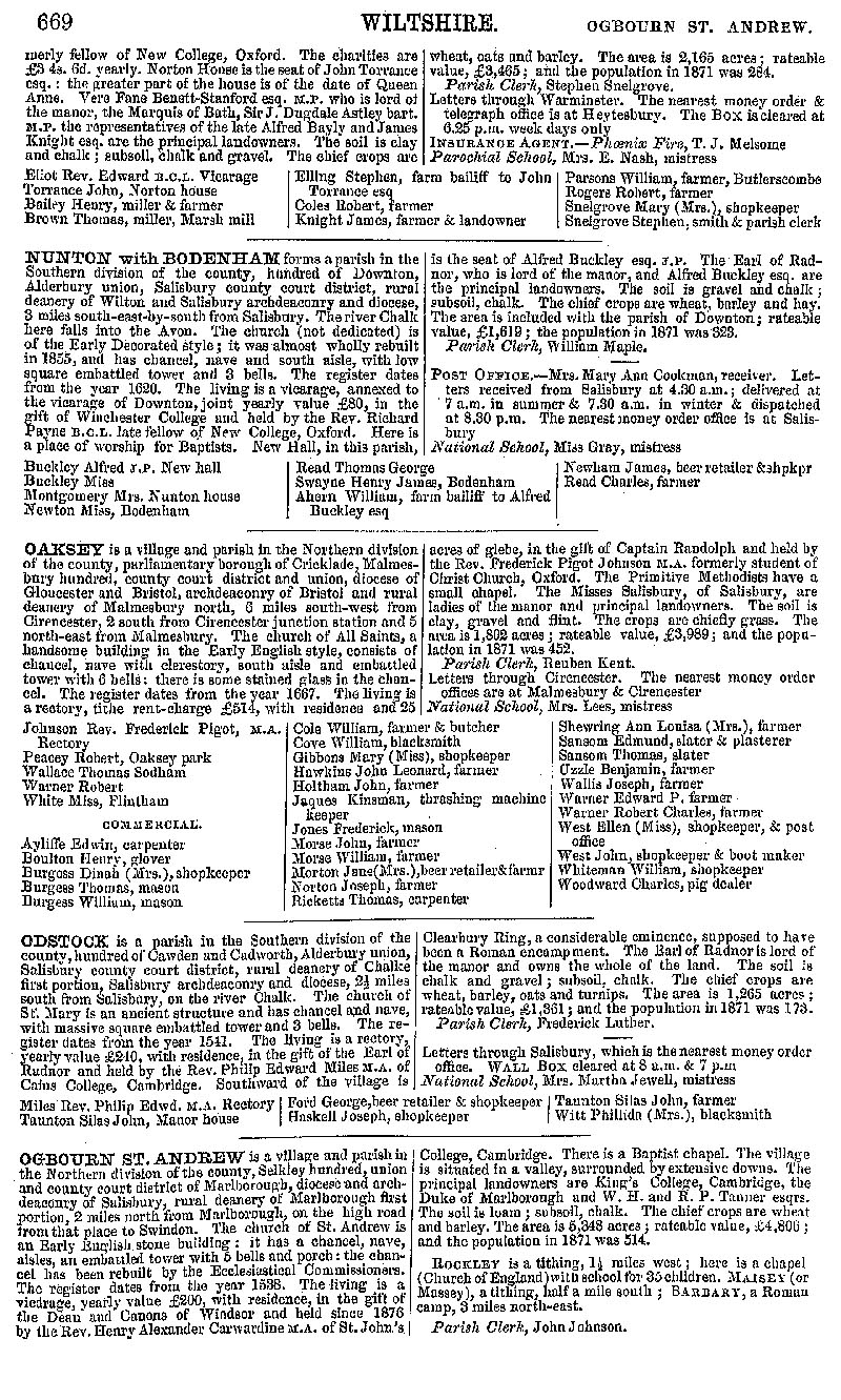 Page 114 Description and residents of Norton Bavant, Nunton with Bodenham (now in Odstock parish), Oaksey, Odstock, and Ogbourne St. Andrew.