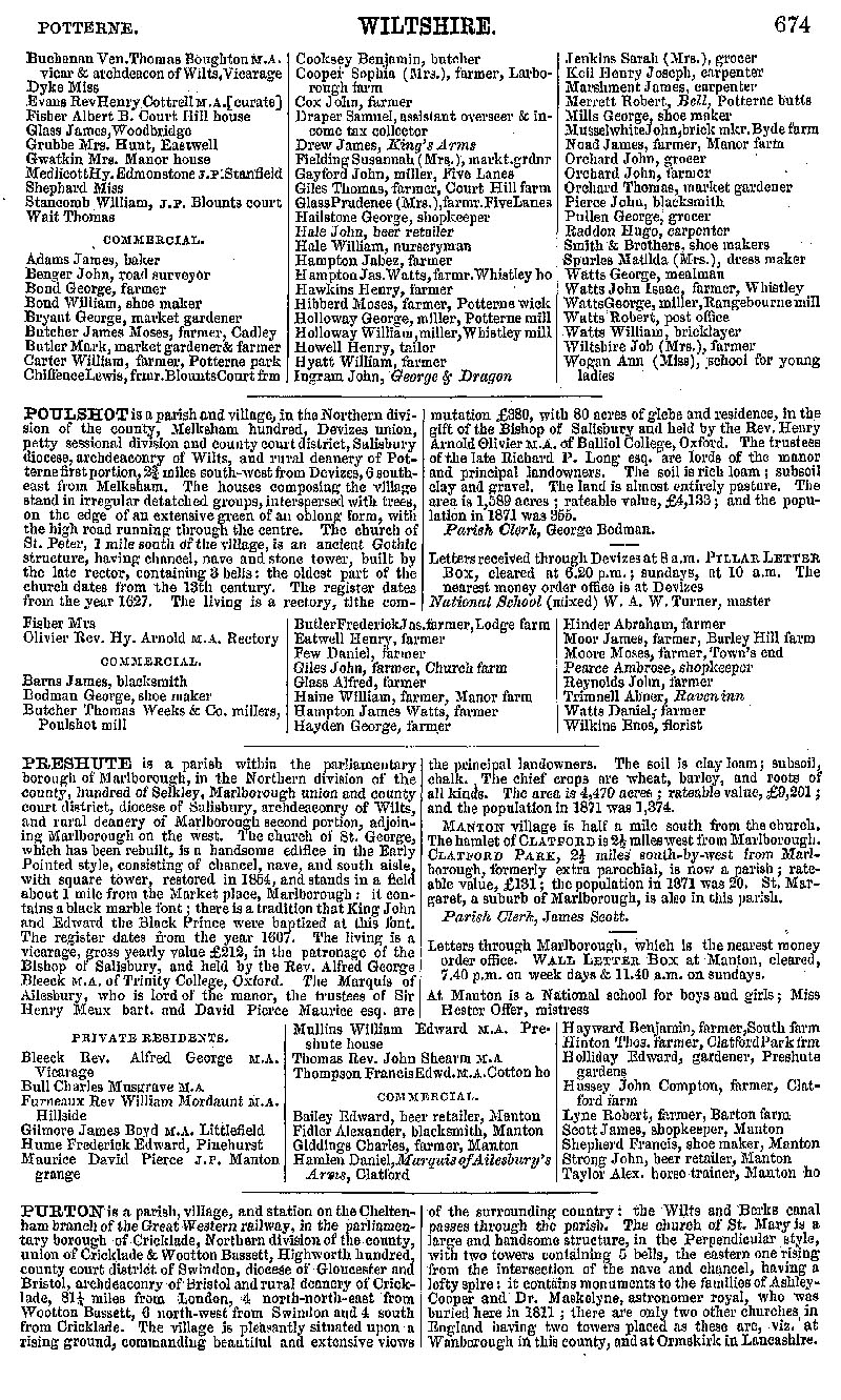 Page 119 Description and residents of Potterne, Poulshot, Preshute and Purton.