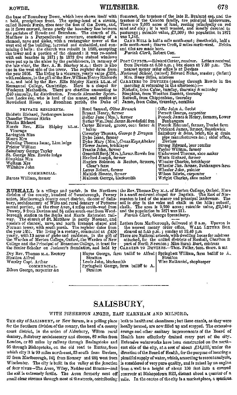 Page 123 Description and residents Rowde and Rushall. Salisbury with Fisherton Anger, East Harnham and Milford; history and description.