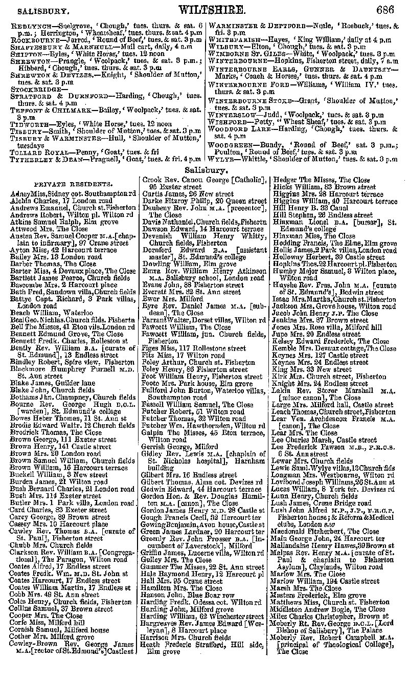 Page 131 Salisbury with Fisherton Anger, East Harnham and Milford, carriers, private residents Adney to Moberly.