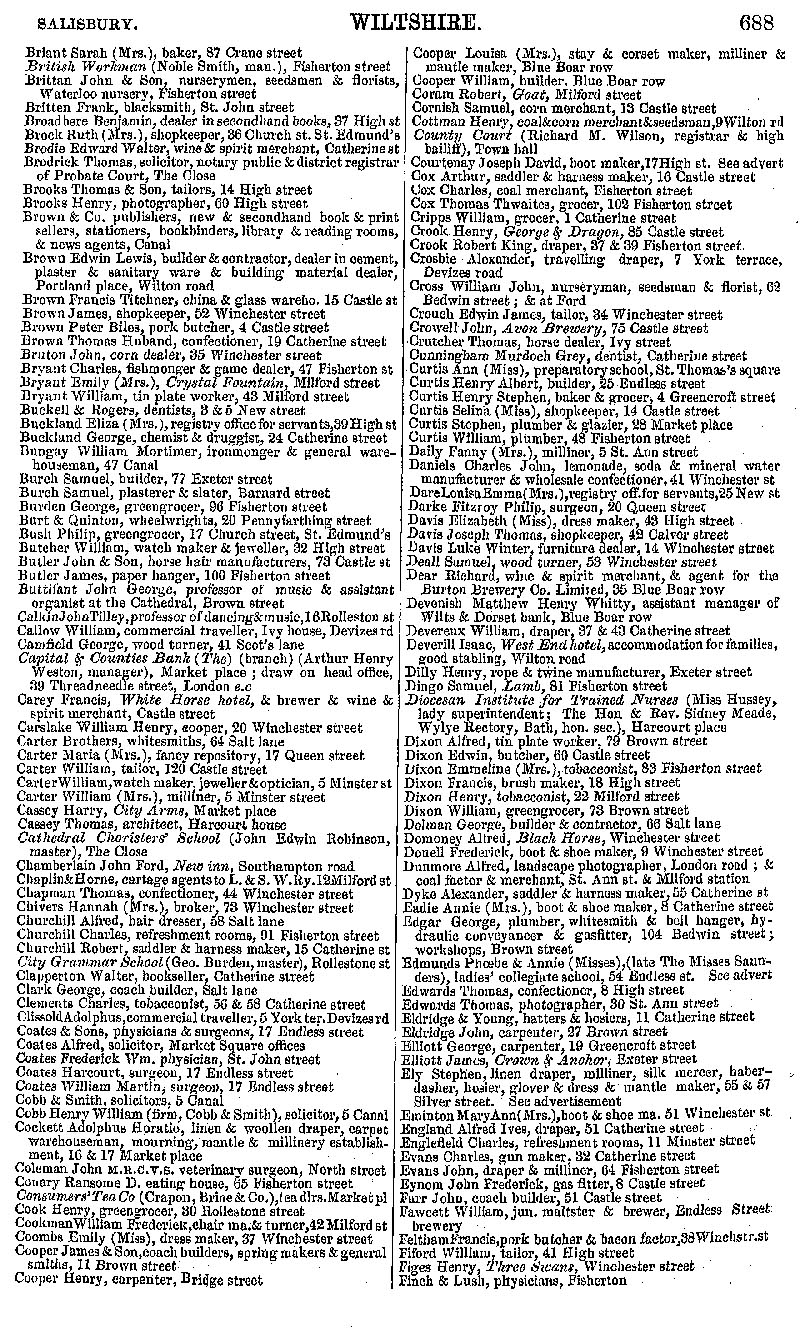 Page 133 Salisbury with Fisherton Anger, East Harnham and Milford, businesses Briant to Finch.