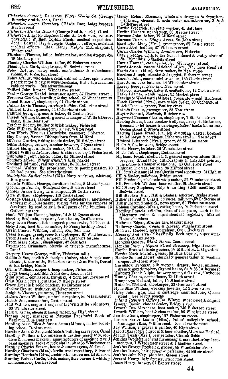Page 134 Salisbury with Fisherton Anger, East Harnham and Milford, businesses from Fisherton to Jones.