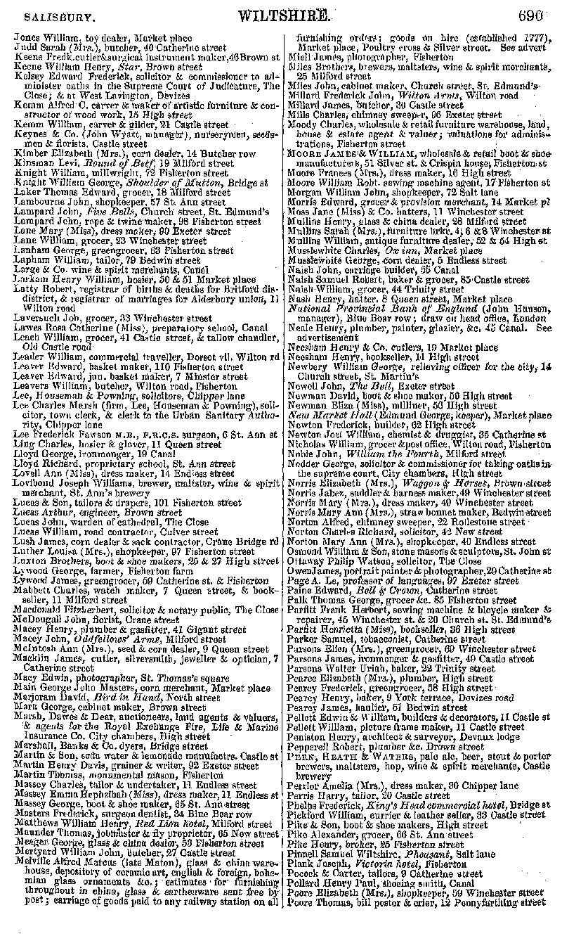 Page 135 Salisbury with Fisherton Anger, East Harnham and Milford, businesses from Jones to Poore.