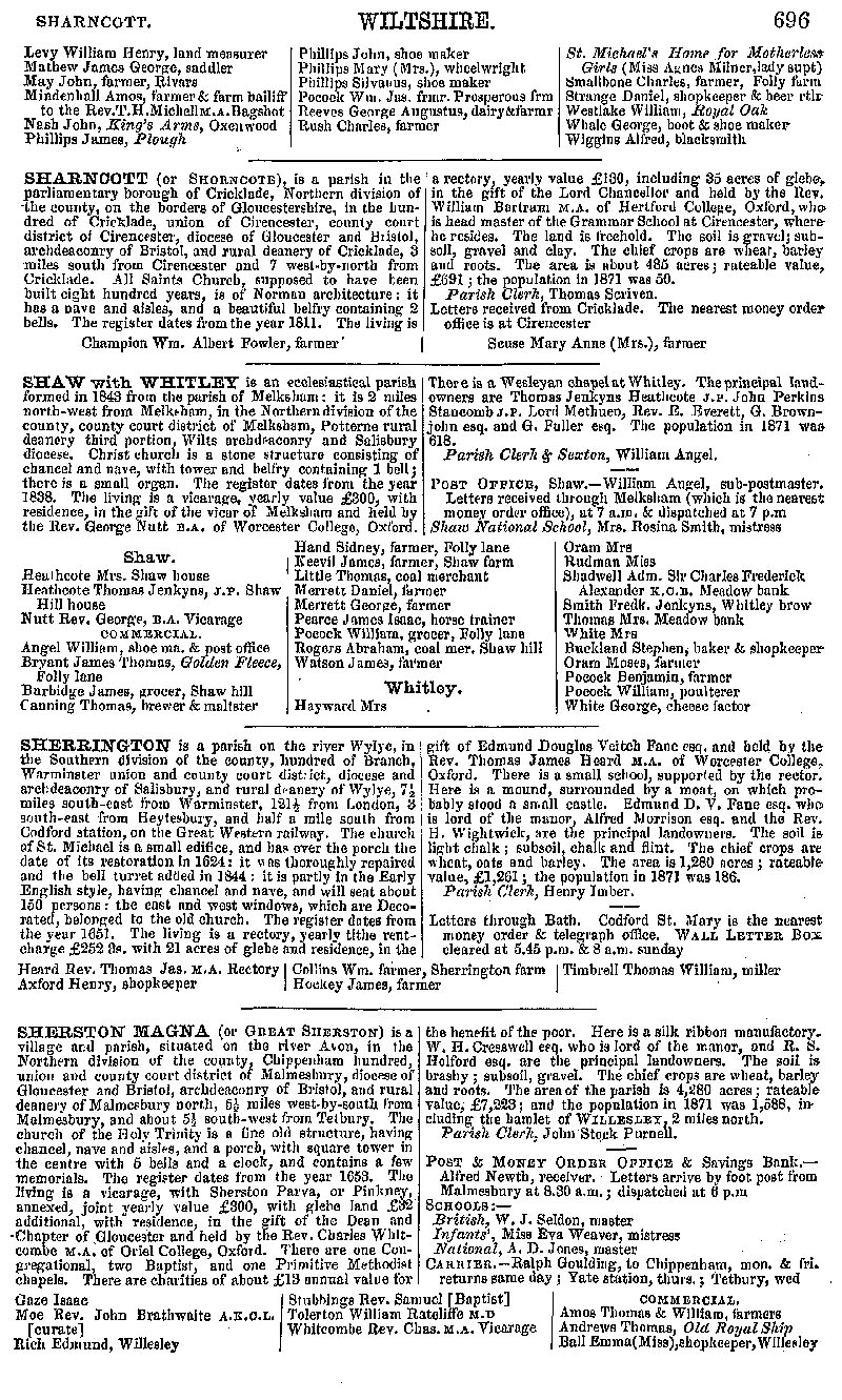 Page 141 Description and residents of Semley, Shalbourne, Sharcott (now in Gloucestershire), Shaw and Whitley, Sherrington and Sherston.