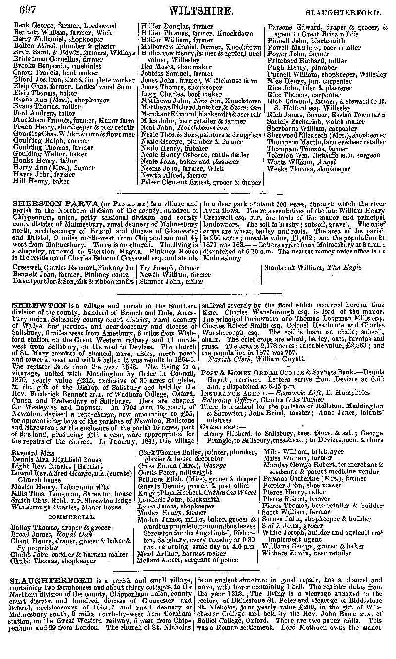 Page 142 Description and residents of Sherston, Sherston Parva (Pinkney), Shrewton and Slaughterford.