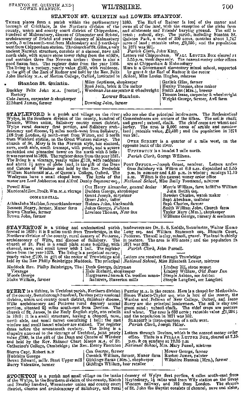 Page 145 Description and residents of Stanton St. Quintin, Stapleford, Staverton, Stert and Stockton.