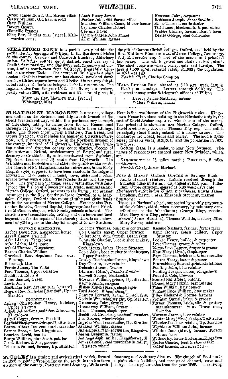 Page 147 Description and residents of Stratford sub Castle, Stratford Tony, Stratton St. Margaret and Studley (now in Calne Without parish).