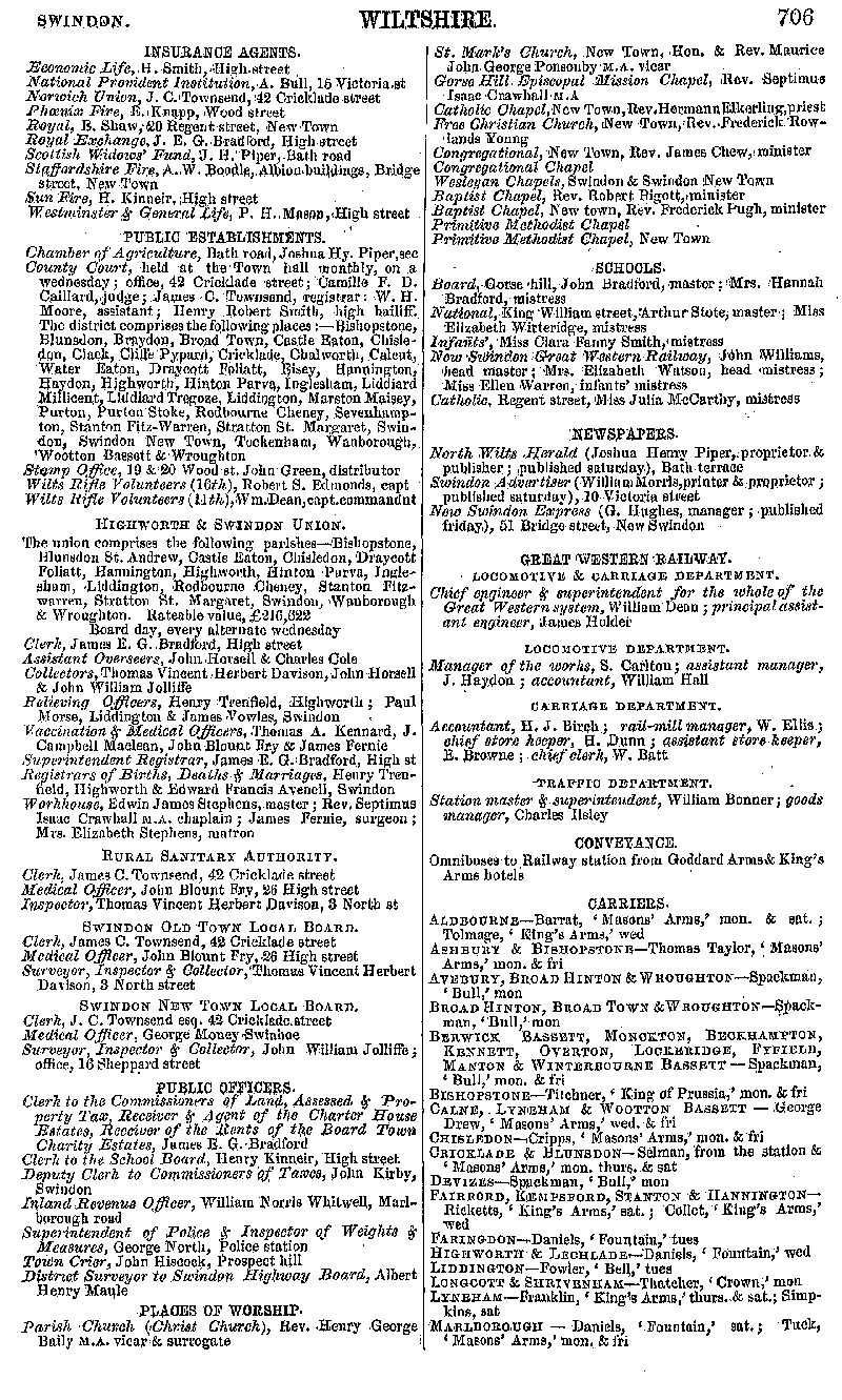 Page 151 Swindon; description. official establishments and local institutions, churches, schools, newspapers, GWR, carriers.