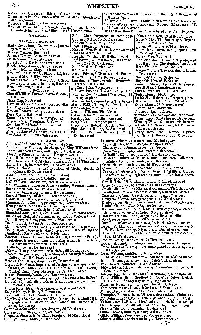 Page 152 Swindon; carriers, private residents of Old Swindon, businesses in Old Swindon from Adams to Gilbert.