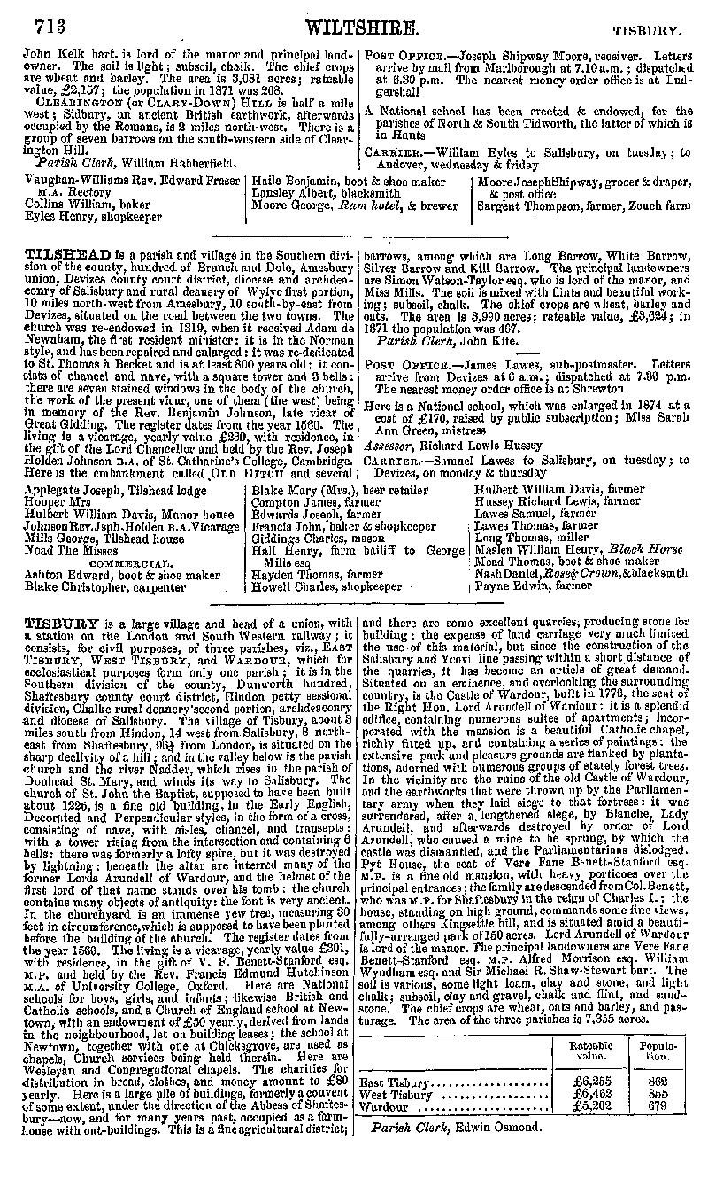 Page 158 Description and residents of North Tidworth, Tilshead and Tisbury.