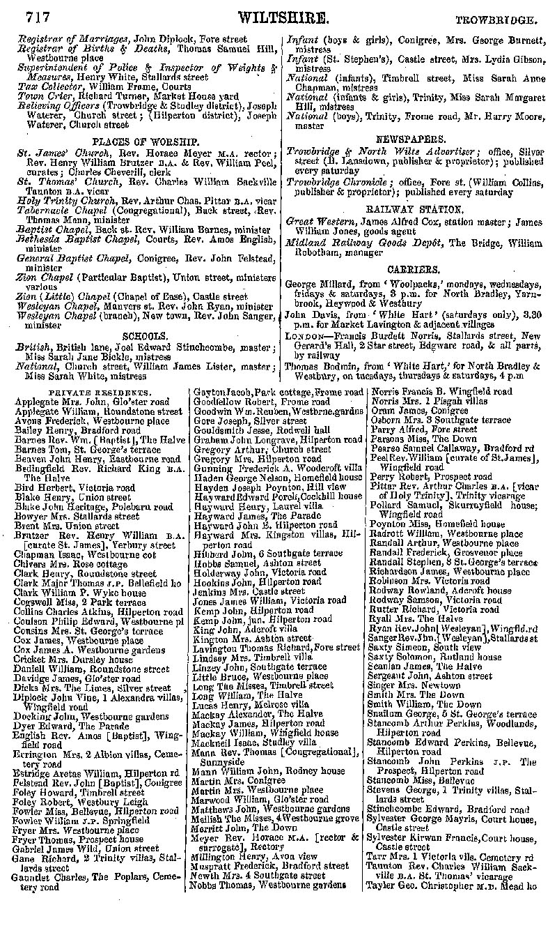 Page 162 Trowbridge; official establishments and local institutions, churches, schools, newspapers, railway and carriers. private residents.