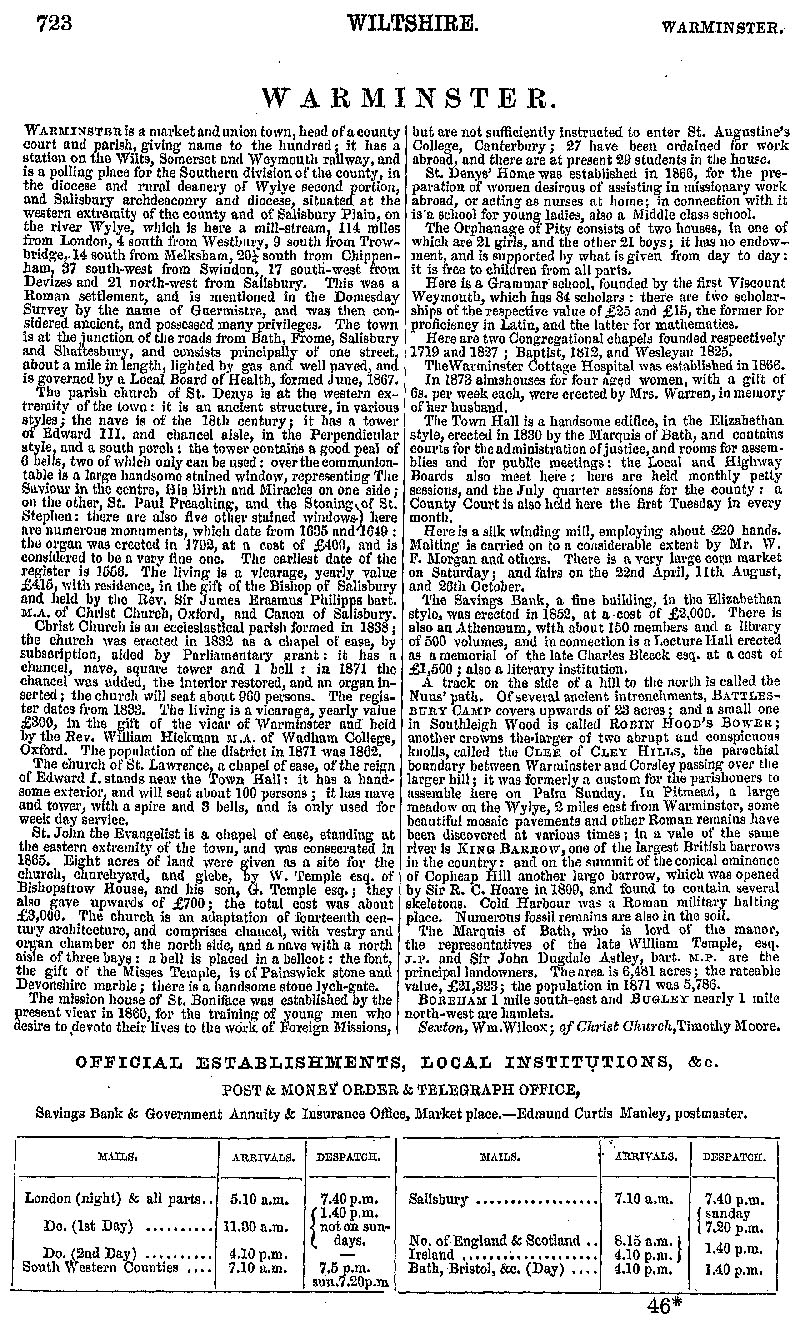 Page 168 Warminster; description and history, official establishments and local institutions.