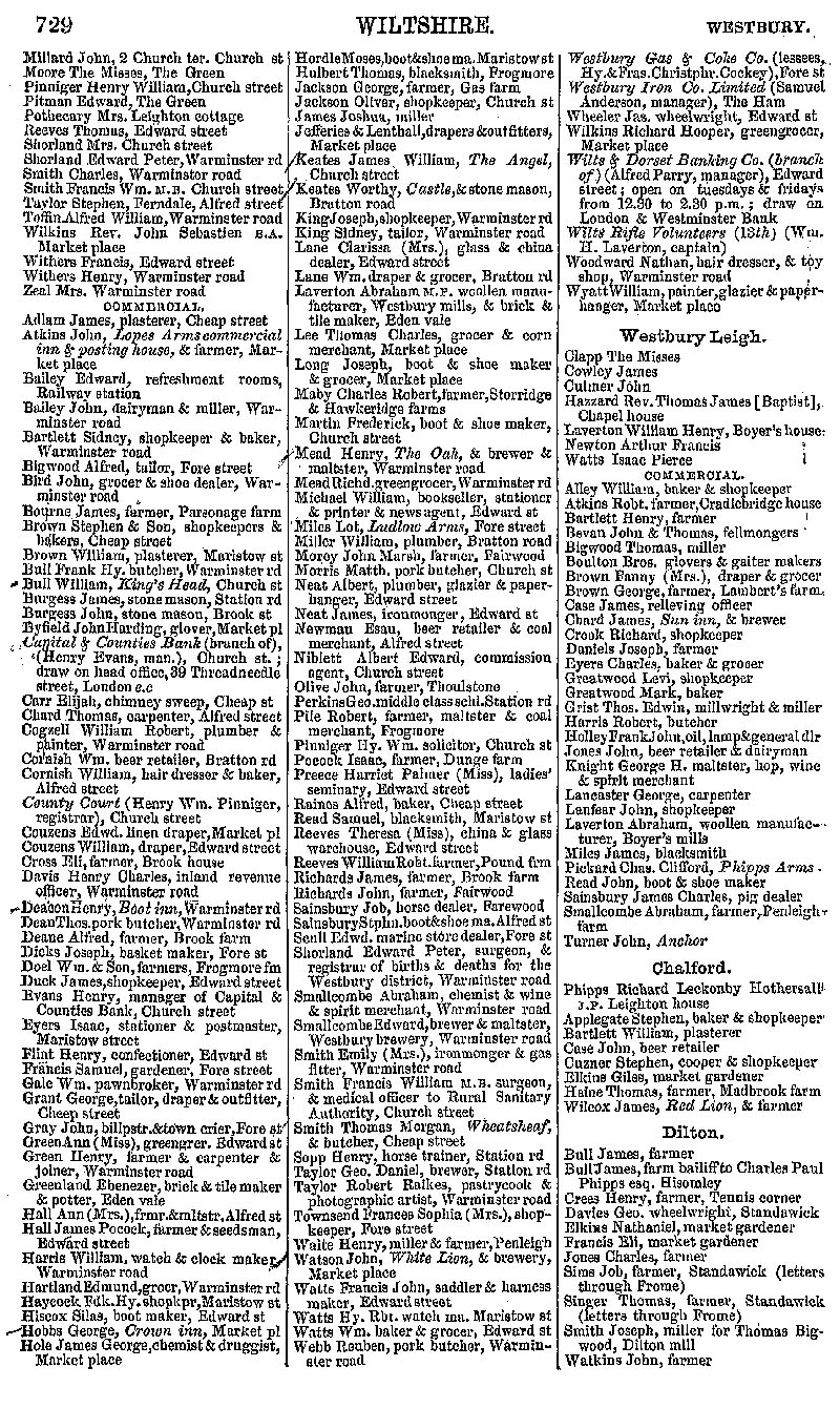 Page 174 Westbury; private residents from Millard to Zeal, businesses from Adlam to Wyatt and in Westbury Leigh, Chalford and Dilton.
