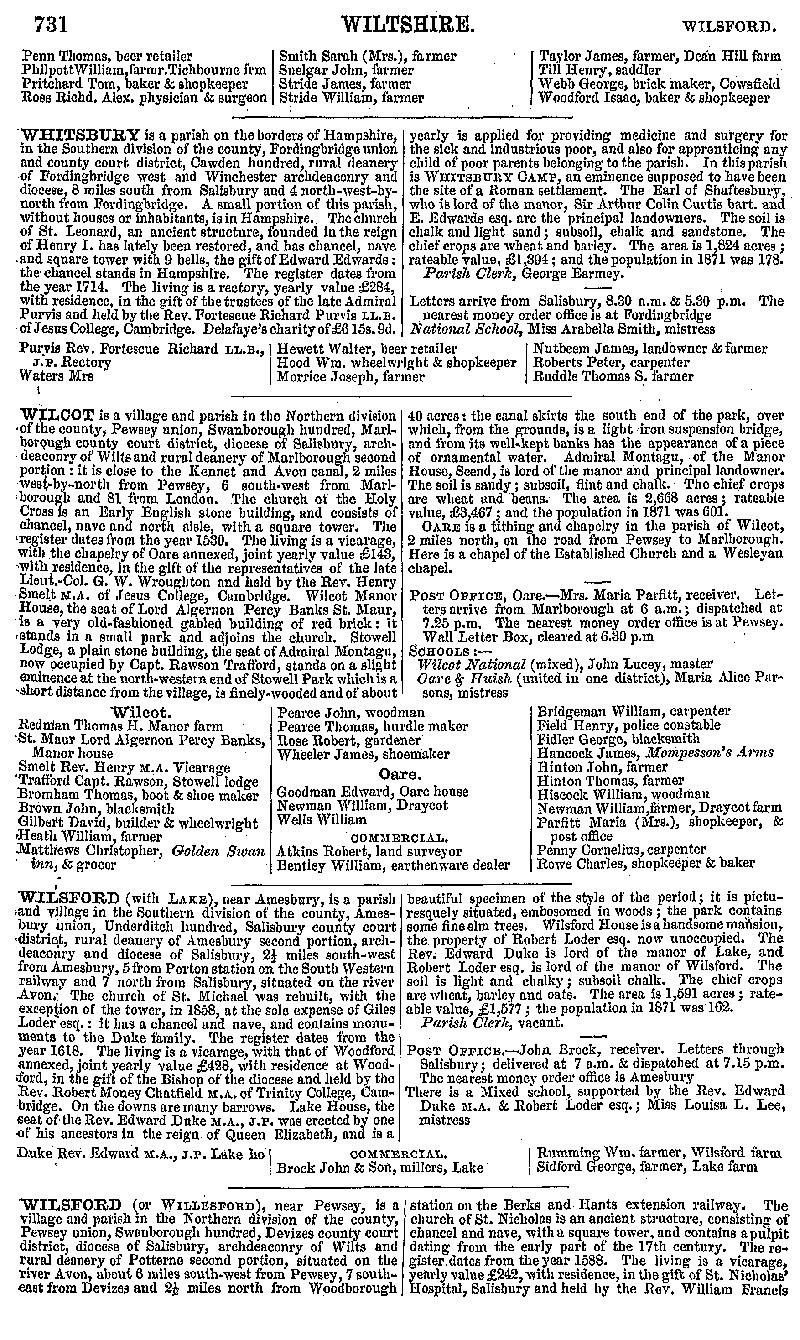 Page 176 Description and residents of Whiteparish, Whitsbury (now in Hampshire), Wilcot (with Oare) Wilsford cum Lake and Wilsford.