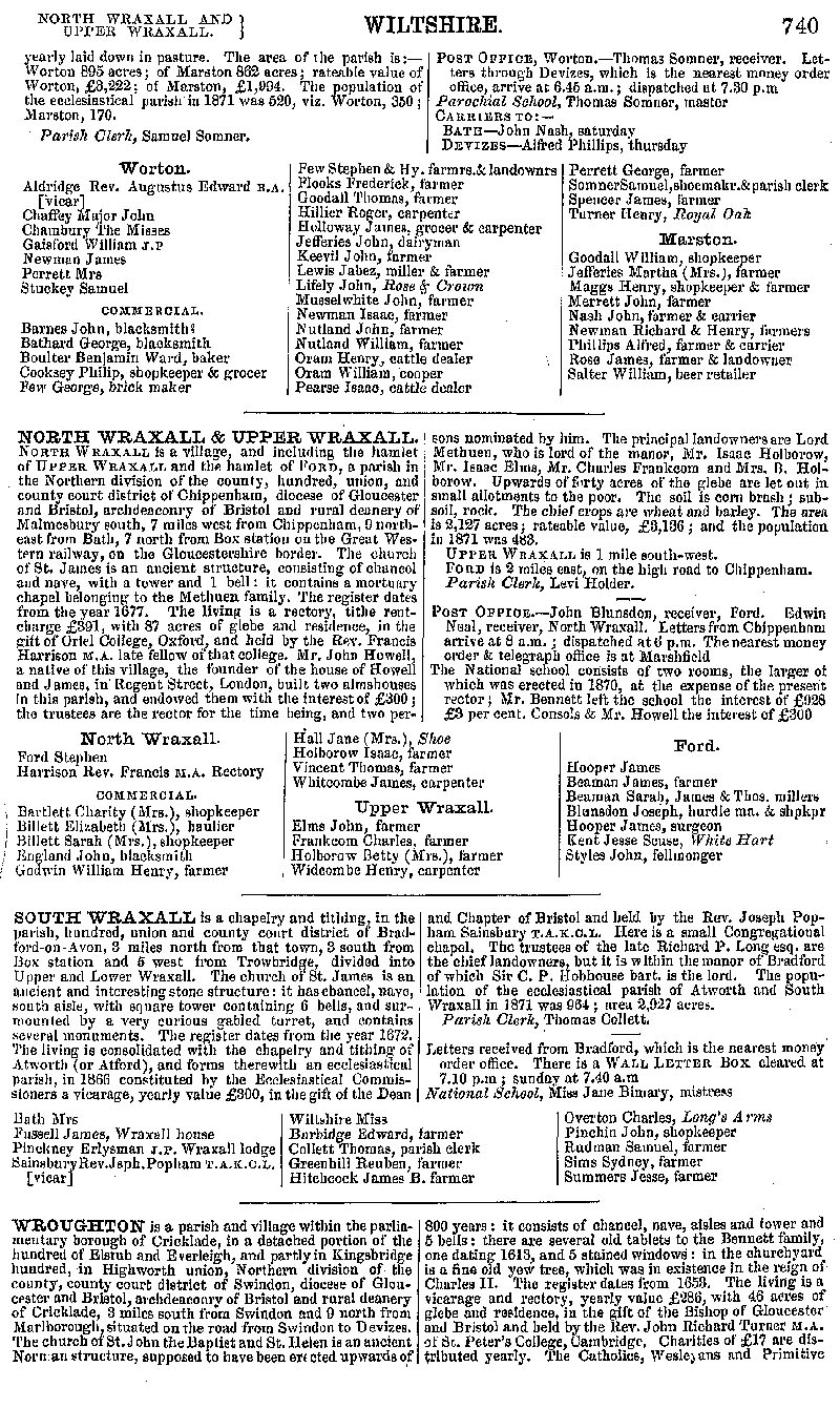 Page 185 Description and residents of Worton and Marston, North Wraxall, South Wraxall and Wroughton.