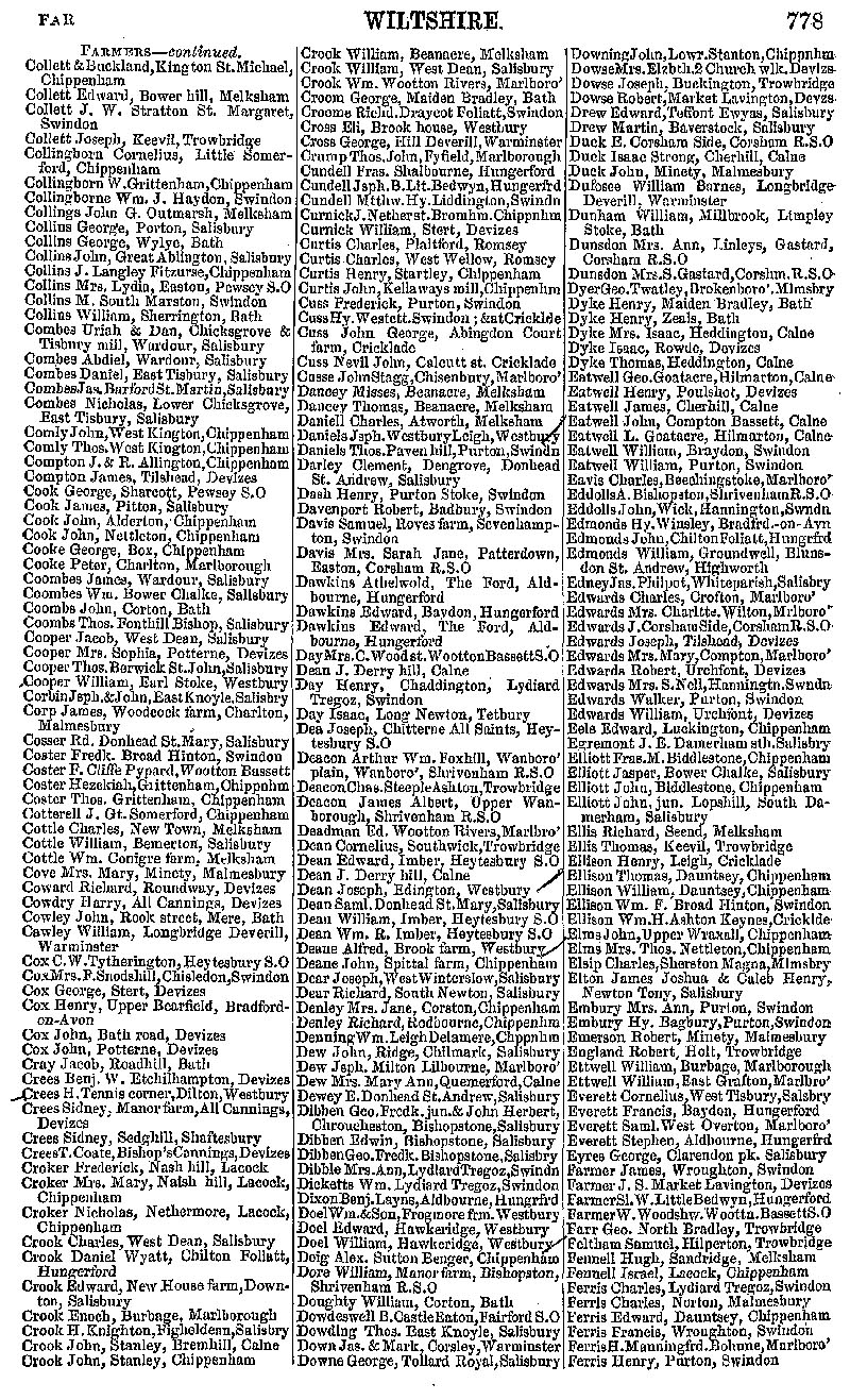 Page 36 Businesses by subject; Farmers and Farm Bailffs (Collett to Ferris).