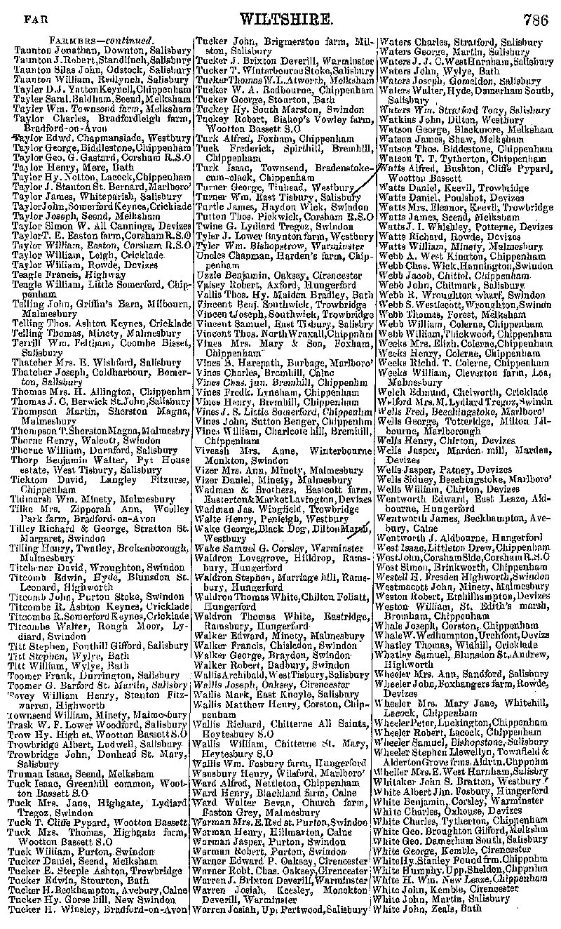Page 44 Businesses by subject; Farmers and Farm Bailffs (Taunton to White).