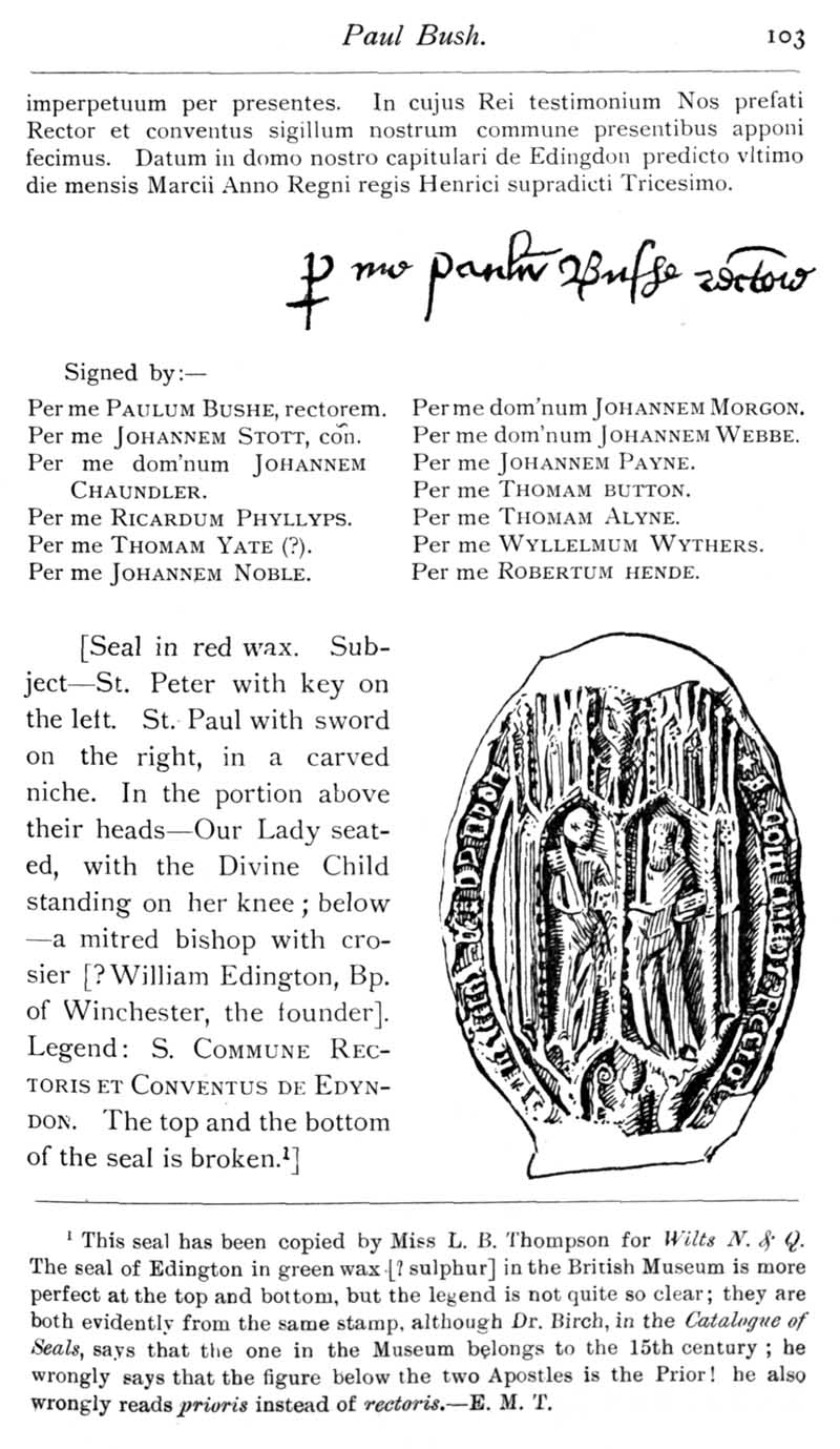 Chapter 4 Paul Bush, Last Rector of Edington ,Records of Wiltshire Parishes,Quakersim in Wiltshire,The Freedom of Sarum,Feet of Fines for Wiltshire,Family Names,Amesbury Monastery,Wiltshire Quakers in America,Queries and Replies