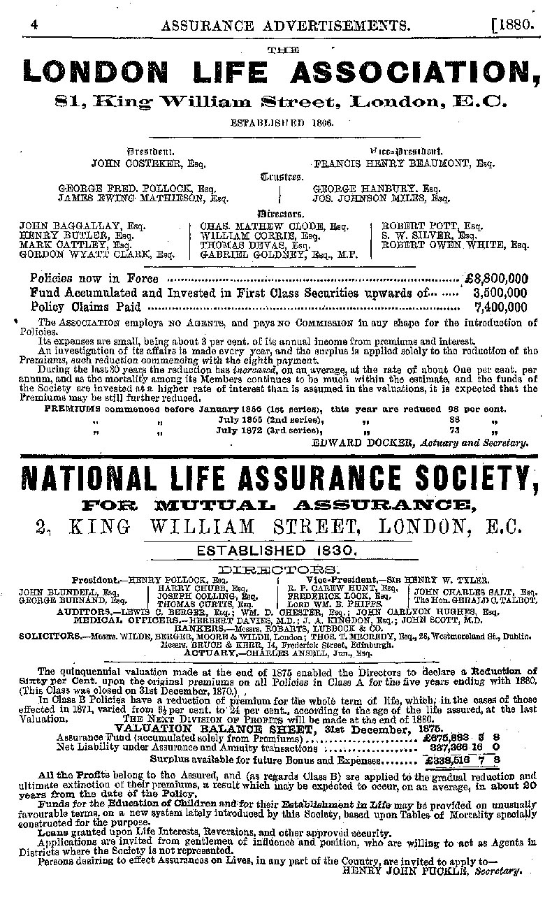 Page 4 Advertisements for the London Life Association, and the National Life Assurance Society.