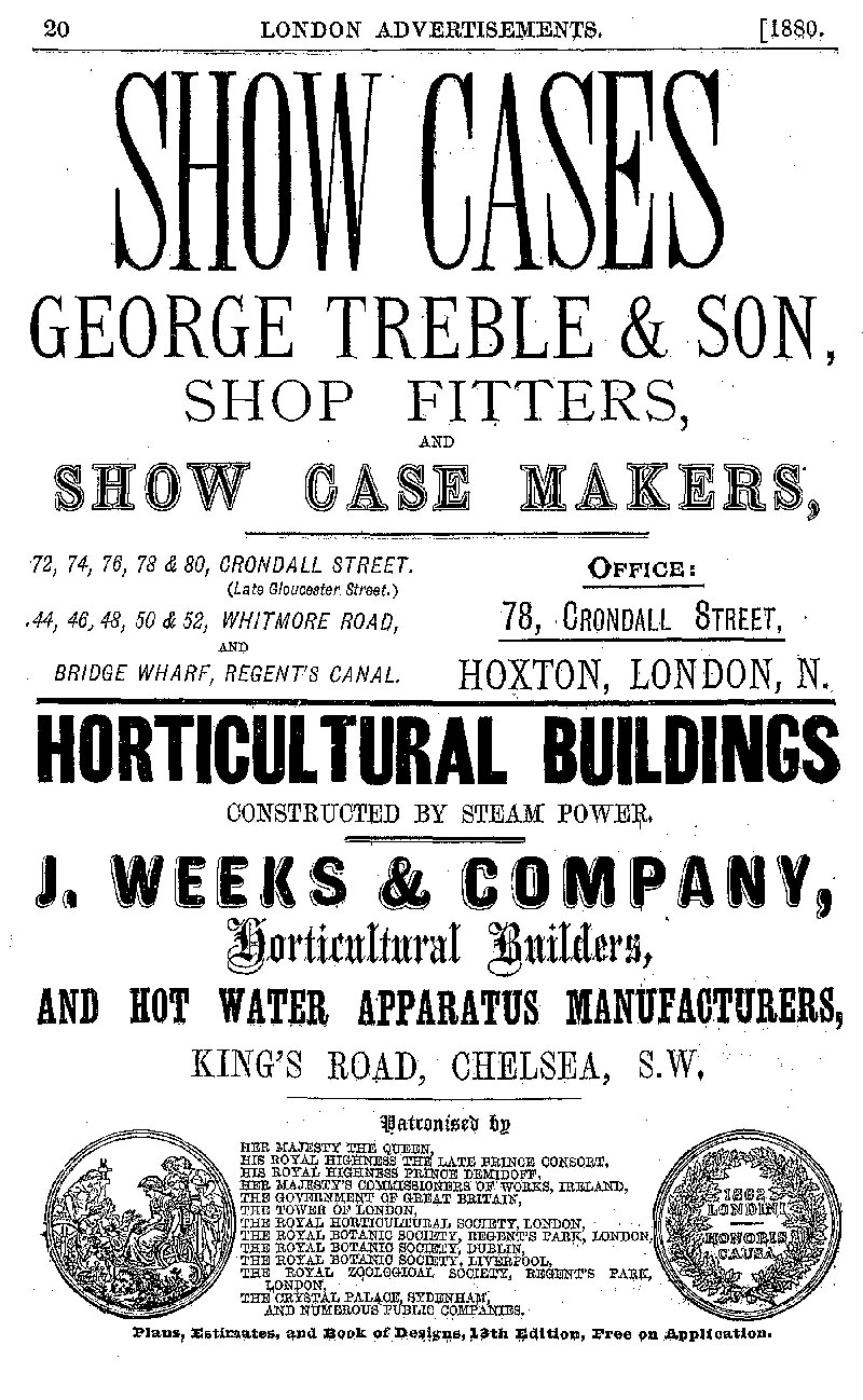 Page 20 Advertisements for George Treble & Son (shop fitters), and J. Weeks & Company (horticultural builders).