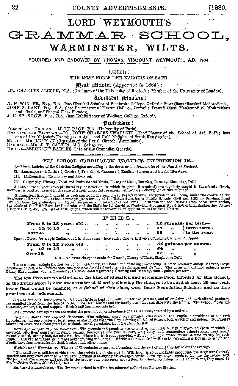 Page 22 Advertisement for Lord Weymouth's Grammar School, Warminster.