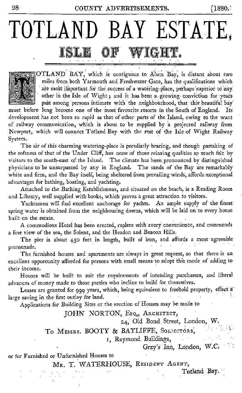 Page 28 Advertisement for the Totland Bay Estate, Isle of Wight.