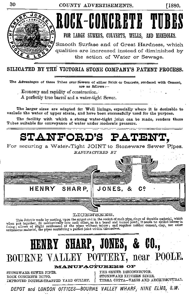 Page 30 Advertisements for Henry Sharp, Jones, & Co., Poole, (pipes, sinks, etc.).