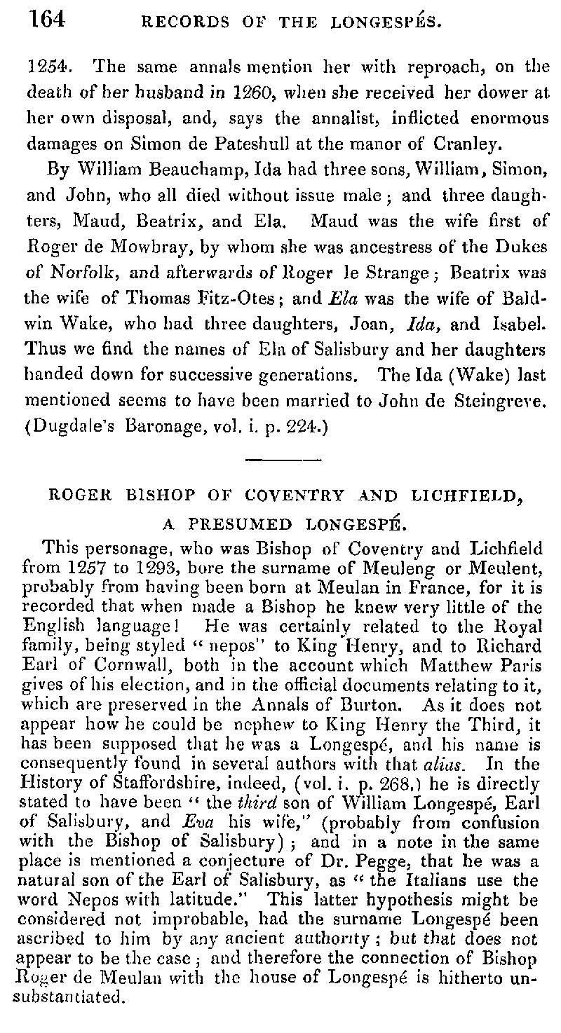 Page 45 Desendents of the Countess Ela of Salisbury; Roger, Bishop of Coventury and Lichfield.