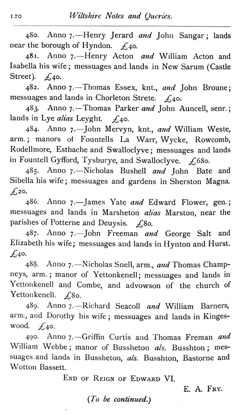 Chapter 4 Paul Bush, Last Rector of Edington ,Records of Wiltshire Parishes,Quakersim in Wiltshire,The Freedom of Sarum,Feet of Fines for Wiltshire,Family Names,Amesbury Monastery,Wiltshire Quakers in America,Queries and Replies