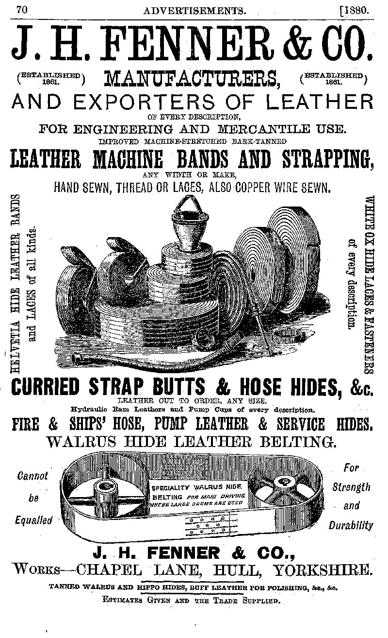 Page 70 Advertisements for J.H. Fenner & Co. leather manufacturers.