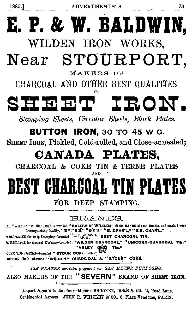 Page 73 Advertisements for E.P. & W. Baldwin's Wilden Iron Works.
