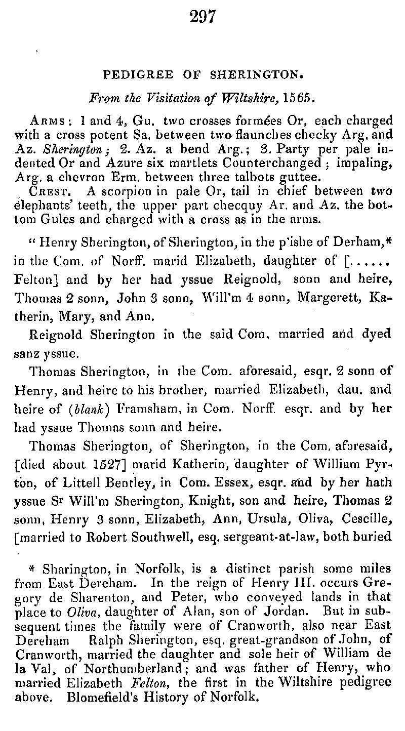 Page 5 Pedigree of Sherington family.