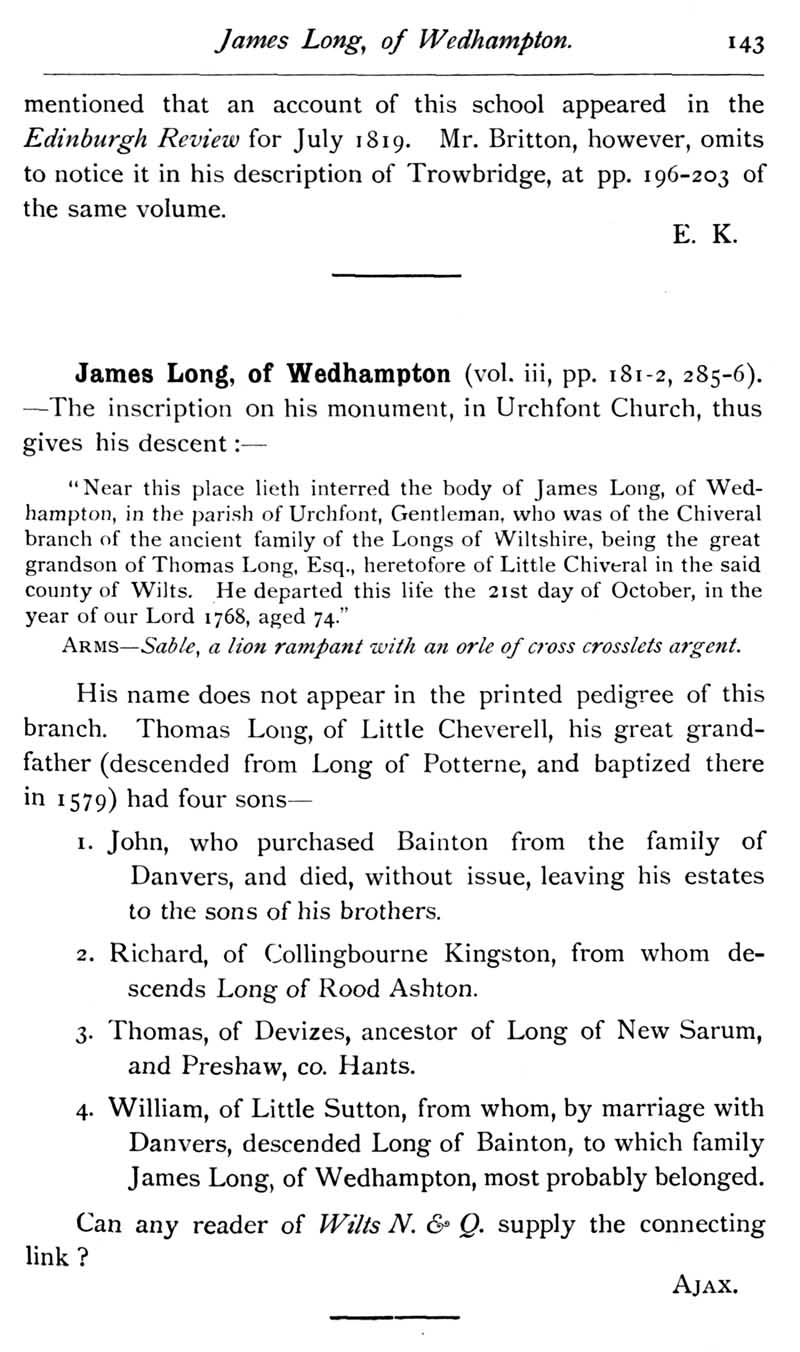 Page 48 Queries: James Long of Wedhampton