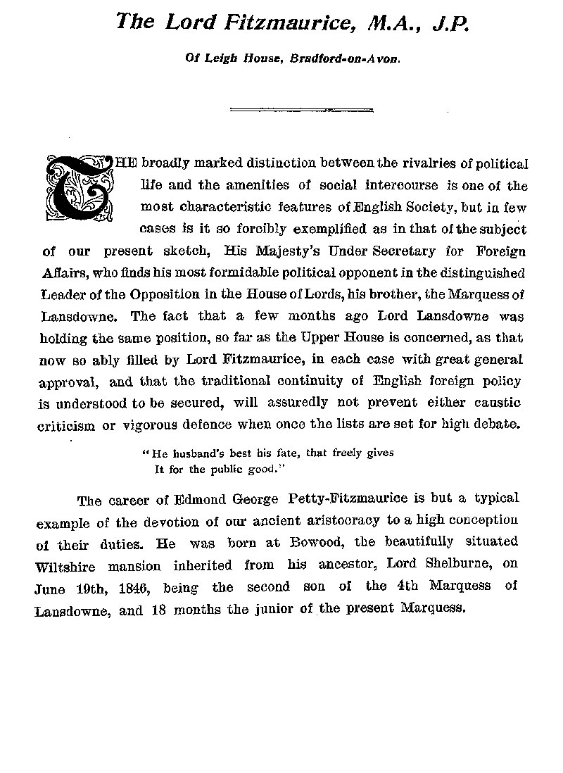 Page 24 Biography of Lord Fitzmaurice of Bradford on Avon.