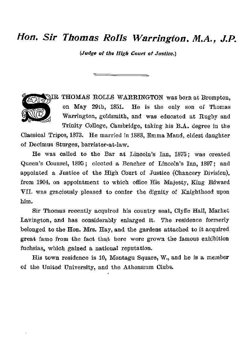 Page 31 Biography of Sir Thomas Rolls Warrington of Market Lavington.