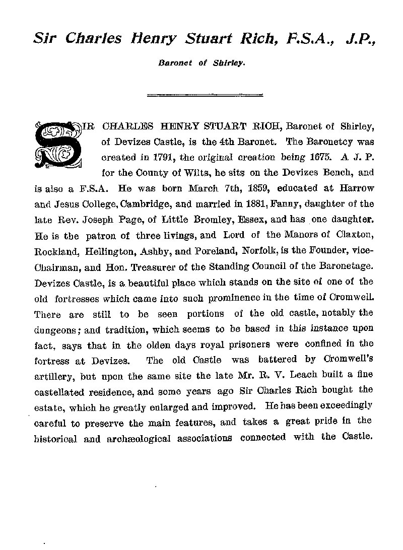 Page 37 Biography of Sir Charles Henry Stuart Rich of Devizes Castle.