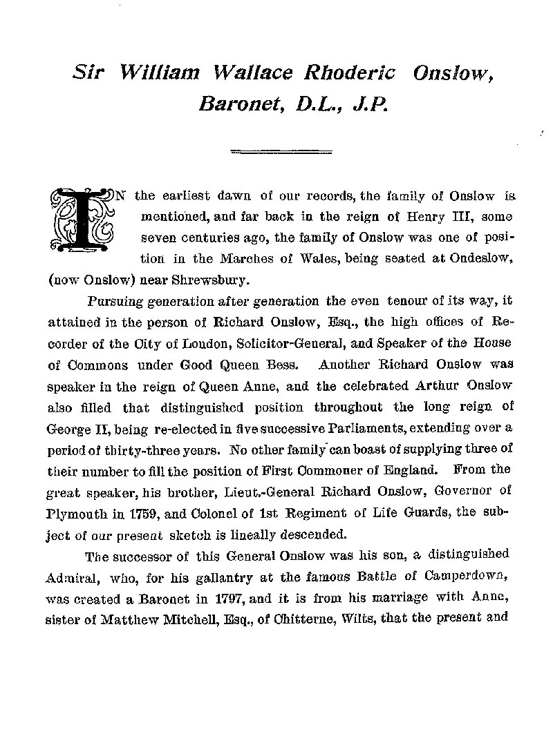 Page 40 Biography of Sir William Wallace Rhoderic Onslow.