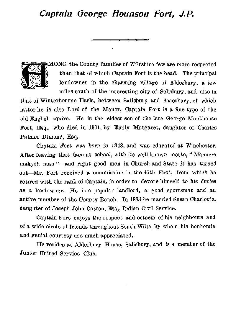 Page 72 Biography of Captain George Hounson Fort of Alderbury.