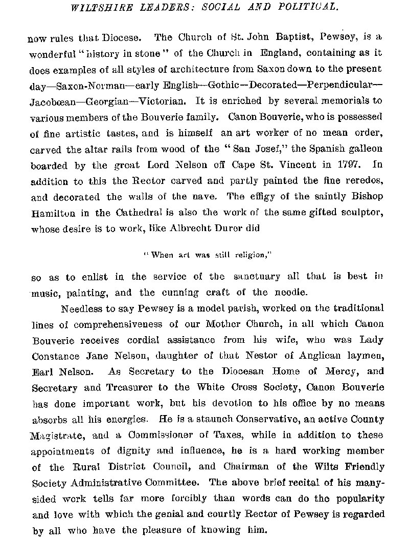 Page 74 Biography of Canon Bertrand Pleydell Bouverie, Rector of Pewsey.