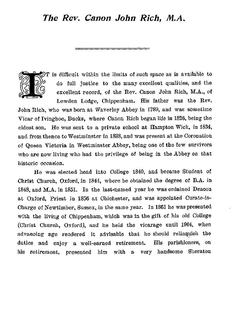 Page 76 Biography of Canon John Rich of Chippenham.