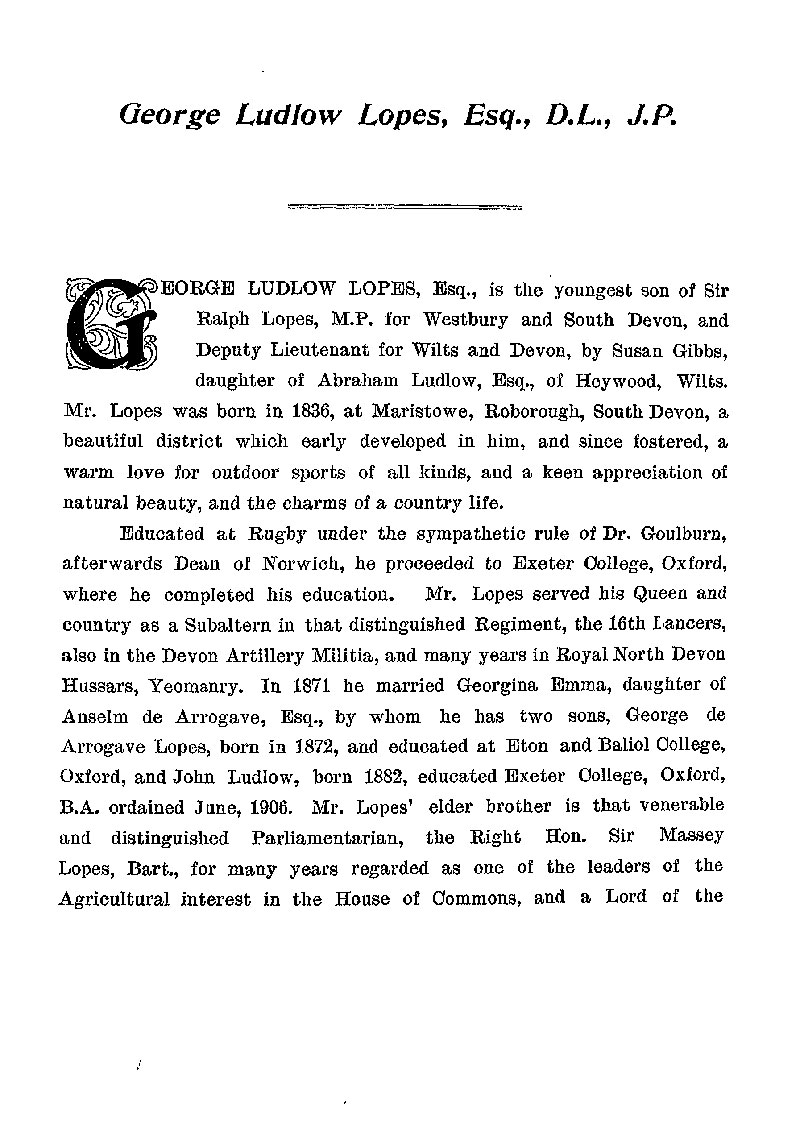 Page 85 Biography of George Ludlow Lopes of Bradford on Avon.