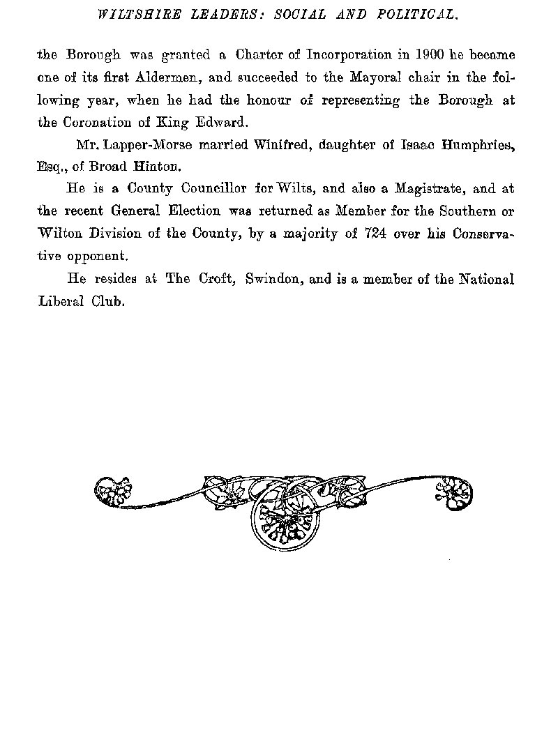 Page 92 Biography of L. Lapper Morse of The Croft, Swindon.