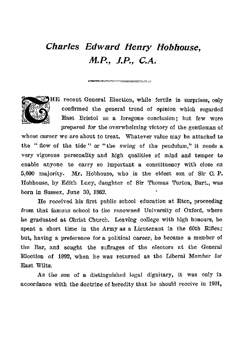 Page 100 Biography of Charles Edward Henry Hobhouse of Neston, Corsham.
