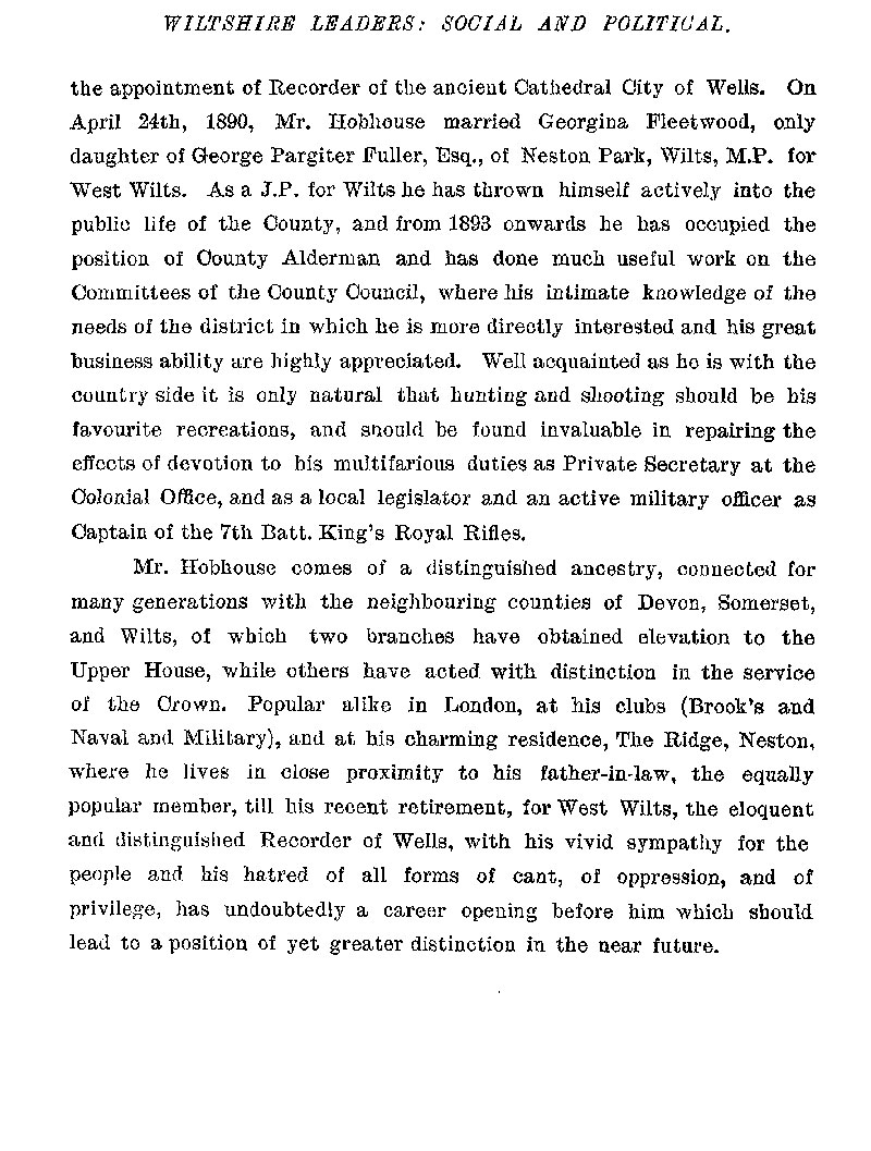 Page 101 Biography of Charles Edward Henry Hobhouse of Neston, Corsham.