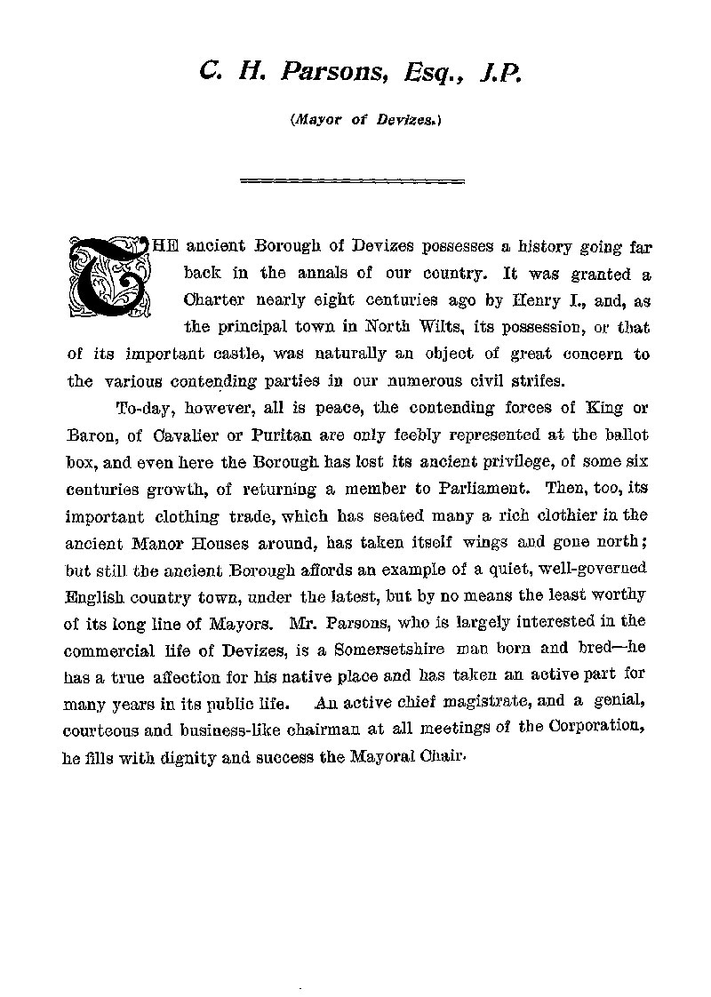 Page 114 Biography of C.H. Parsons, Mayor of Devizes.